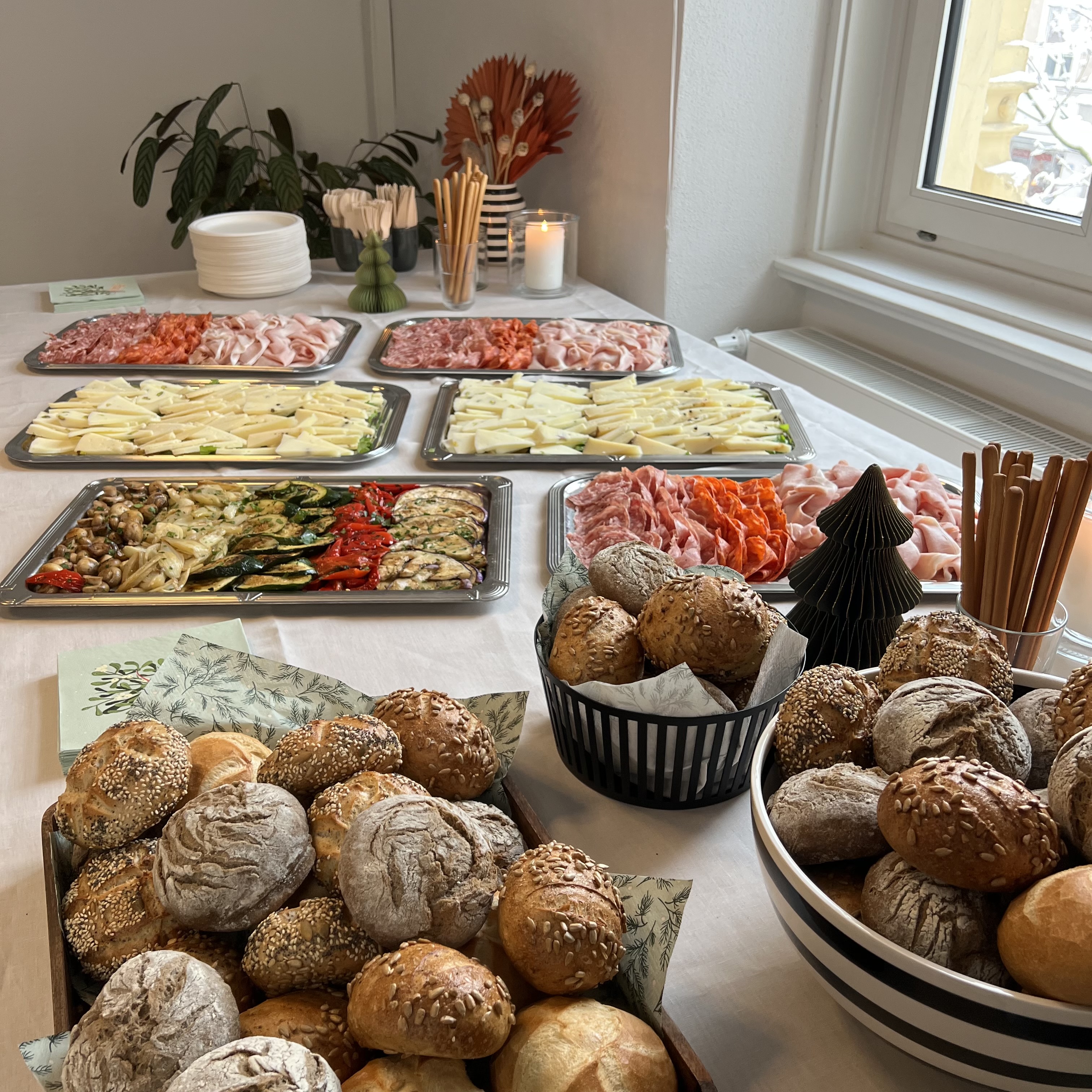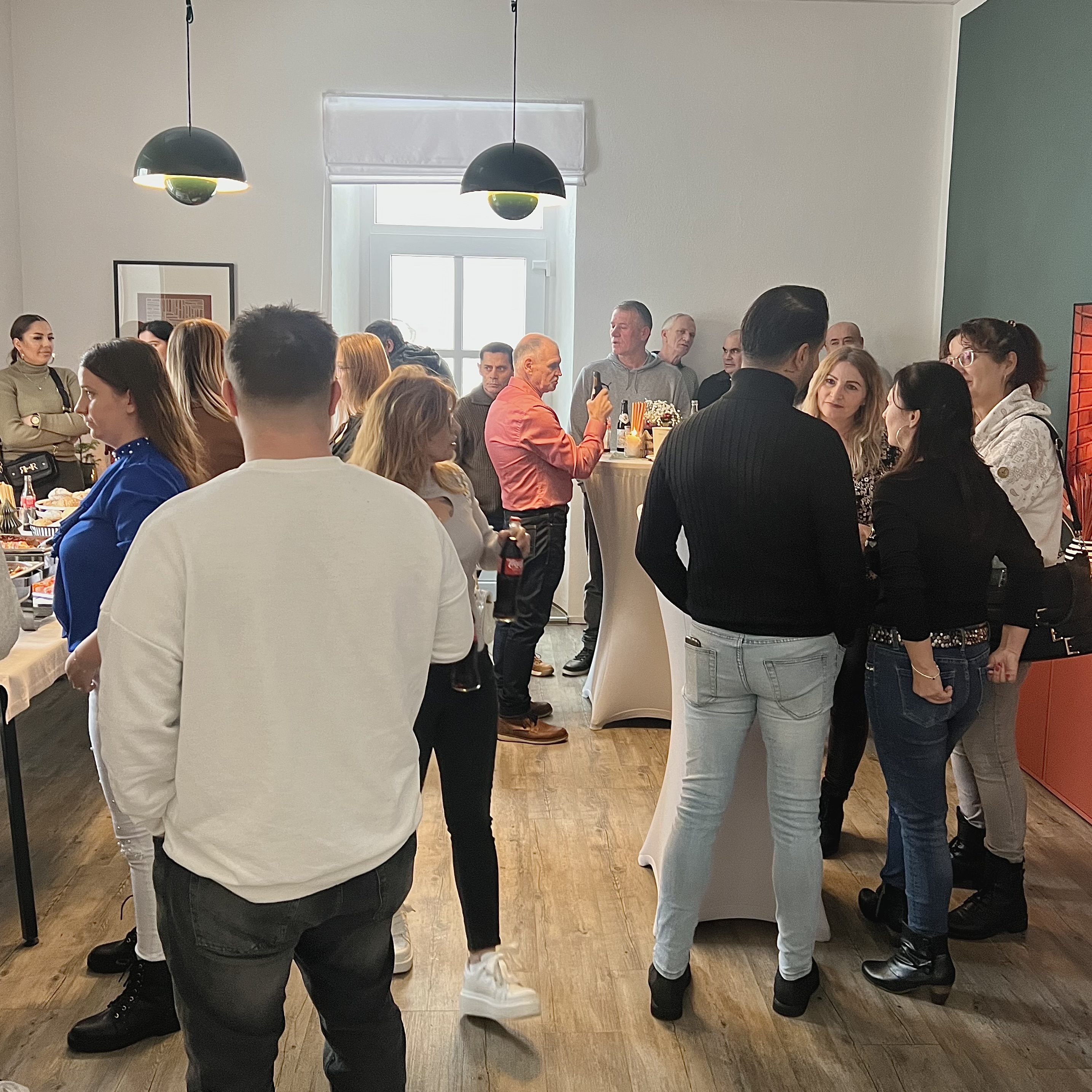 Trotz widriger Wetterbedingungen und eingestellten öffentlichen Verkehrsmitteln sind zahlreiche Mitarbeiter zur Weihnachtsfeier erschienen. Einige von Ihnen legten sogar beeindruckende Strecken zu Fuß zurück, um mit uns gemeinsam zu feiern. In unserem festlich geschmückten Büro gab es für die Mitarbeiter heißen Glühwein, reichlich Kaffee und liebevoll angerichtete italienische Speisen vom Restaurant Mavin aus Lechhausen.